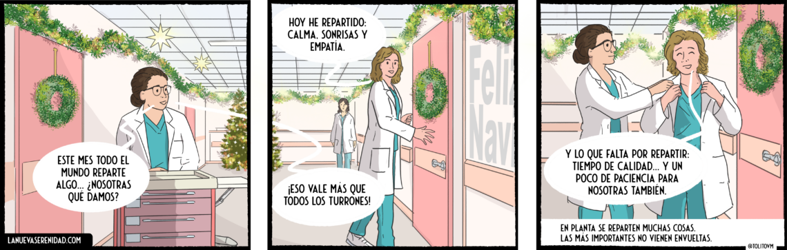Sabemos que los profesionales del sector salud tenéis miles de historias que contar: anécdotas graciosas, tristes, emocionantes, reivindicativas, reflexivas… Aquí les daremos vida a modo de tira cómica de la mano de nuestro colaborador enfermero, especialista en pediatría: Tolo Villalonga.